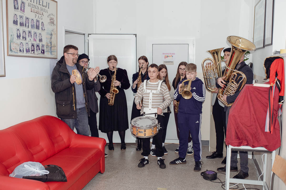 Zabavili smo se u karnevalskom kvizu koji je vodio profesor Toni Herenda, prošetali modnom revijom koju je animirala profesorica Lea Fabijanić, a onda – uz prijatelje iz osnovne škole i naše drage glazbare – s guštom zakolali paško kolo!”
