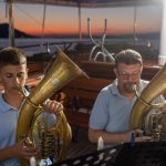 23 glazbara Gradske glazbe Pag poveli su sinoć sve koji su se zatekli na Branimirovoj obali u Pagu na glazbeno putovanje u popularnu glazbu 20. stoljeća. Smješteni na brodu Festini poveli su glazbeno putovanje u prekrasni ljetni sumrak.